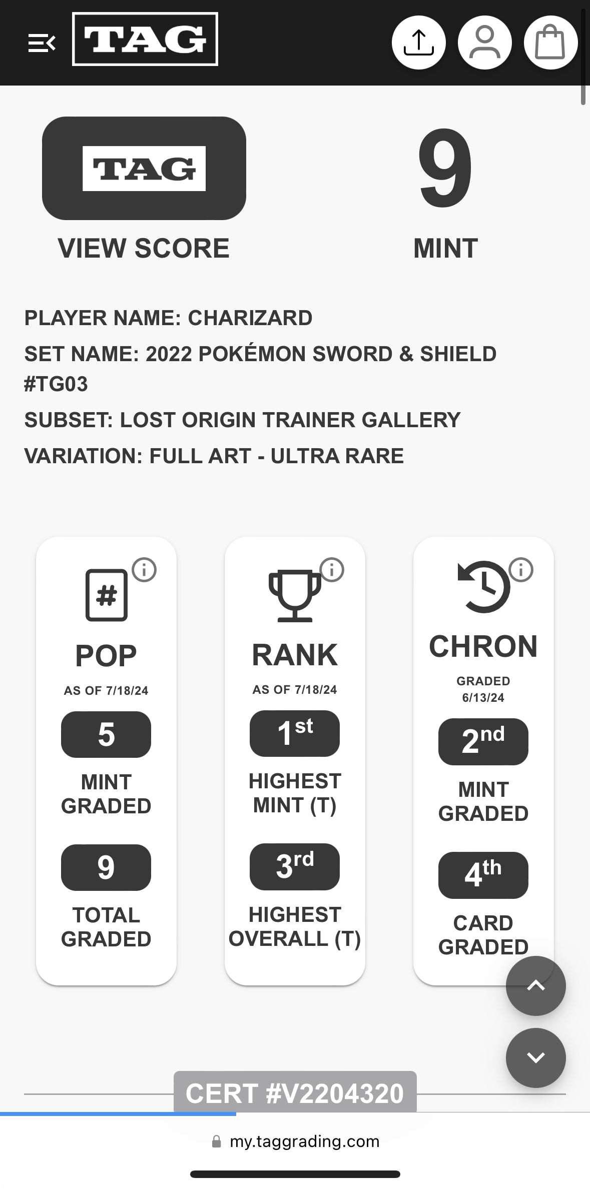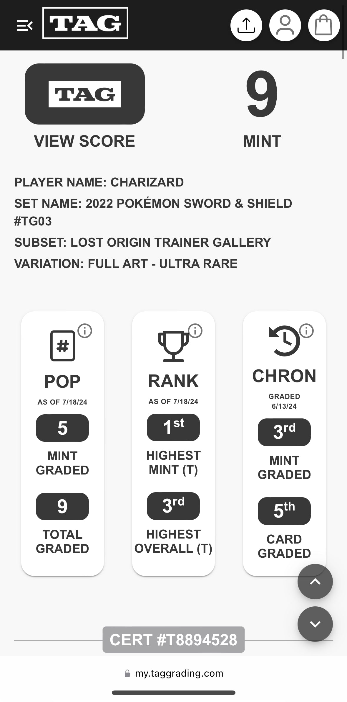 Charizard TG 03 TAG 9