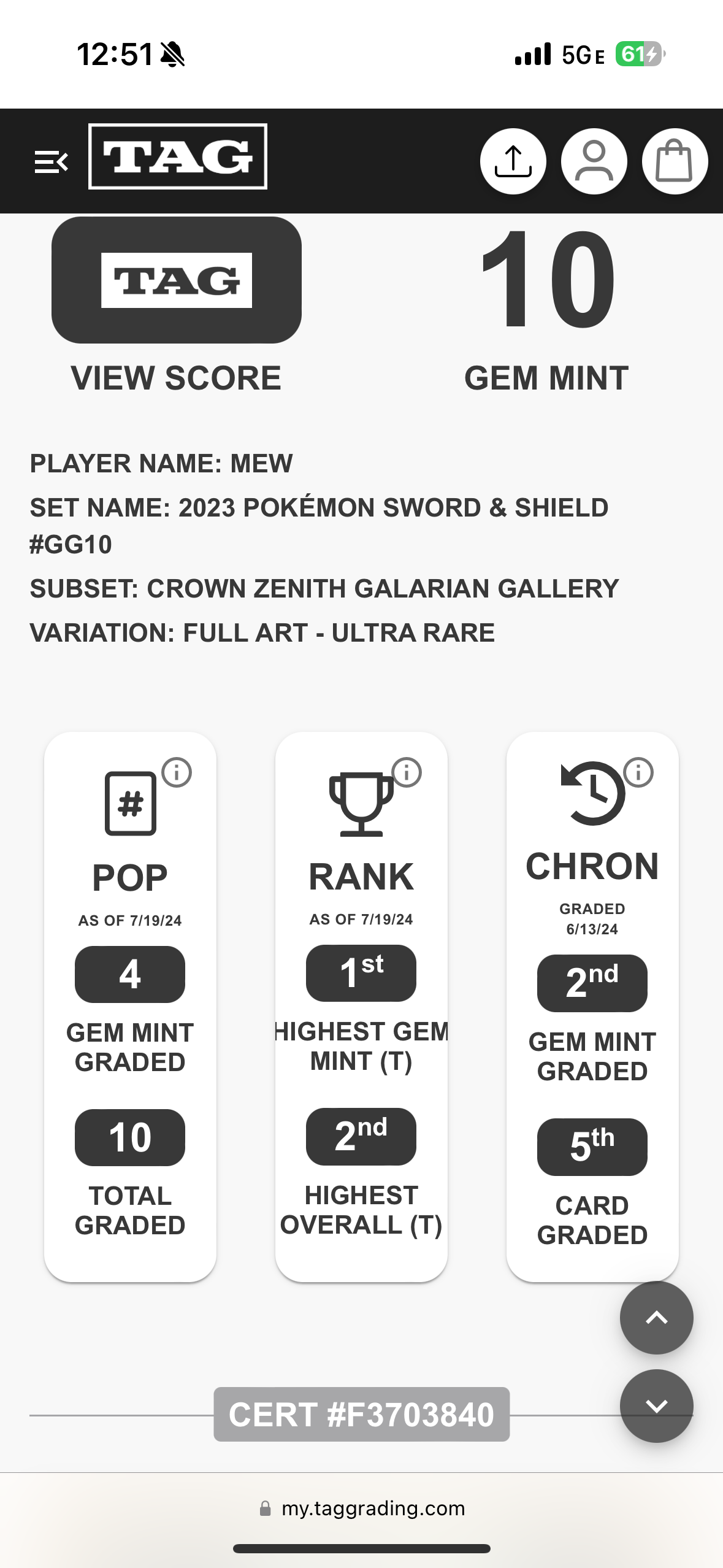 Mew GG10 - Crown Zenith