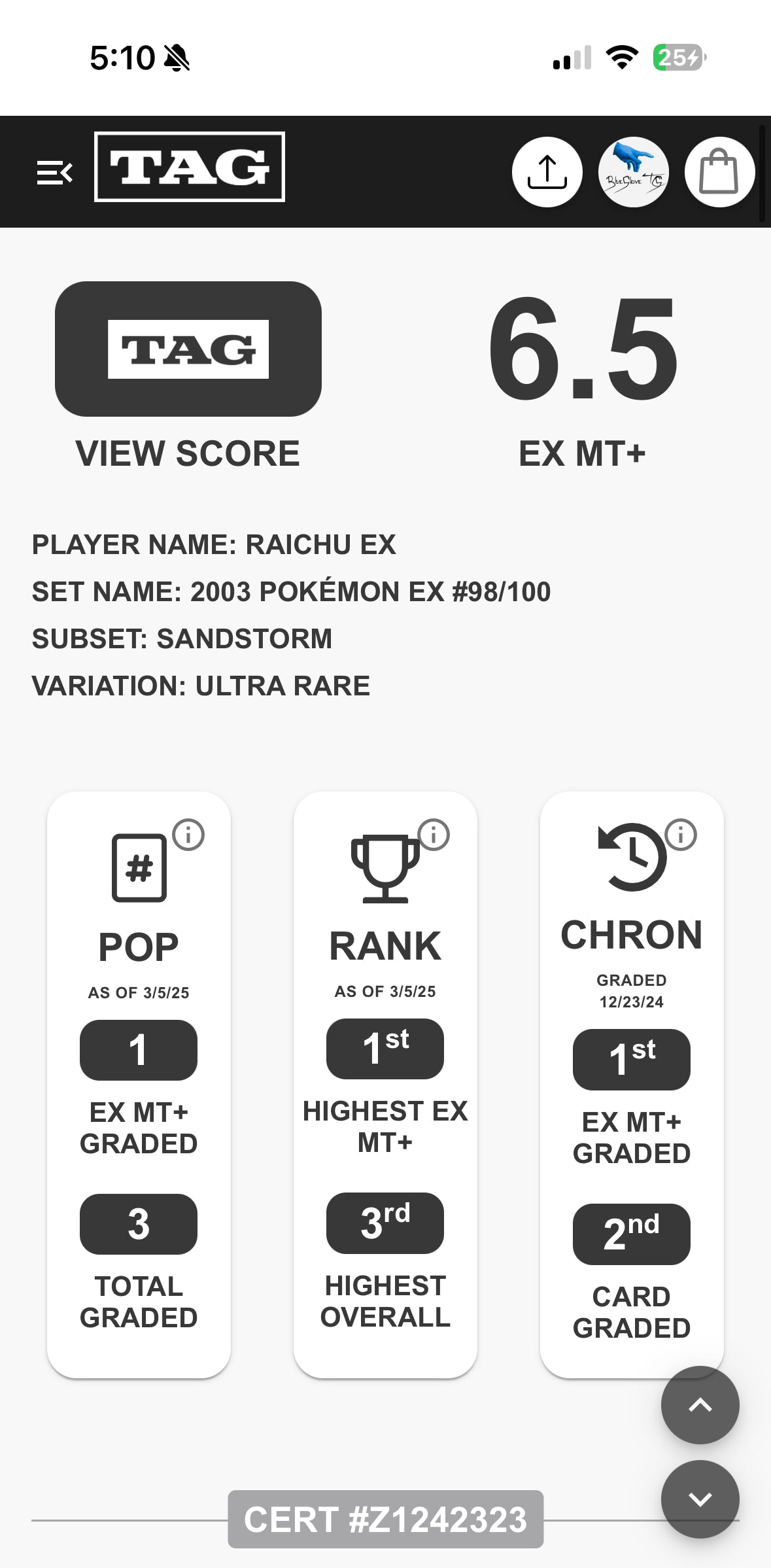 Raichu Ex TAG 6.5 “POP” 1