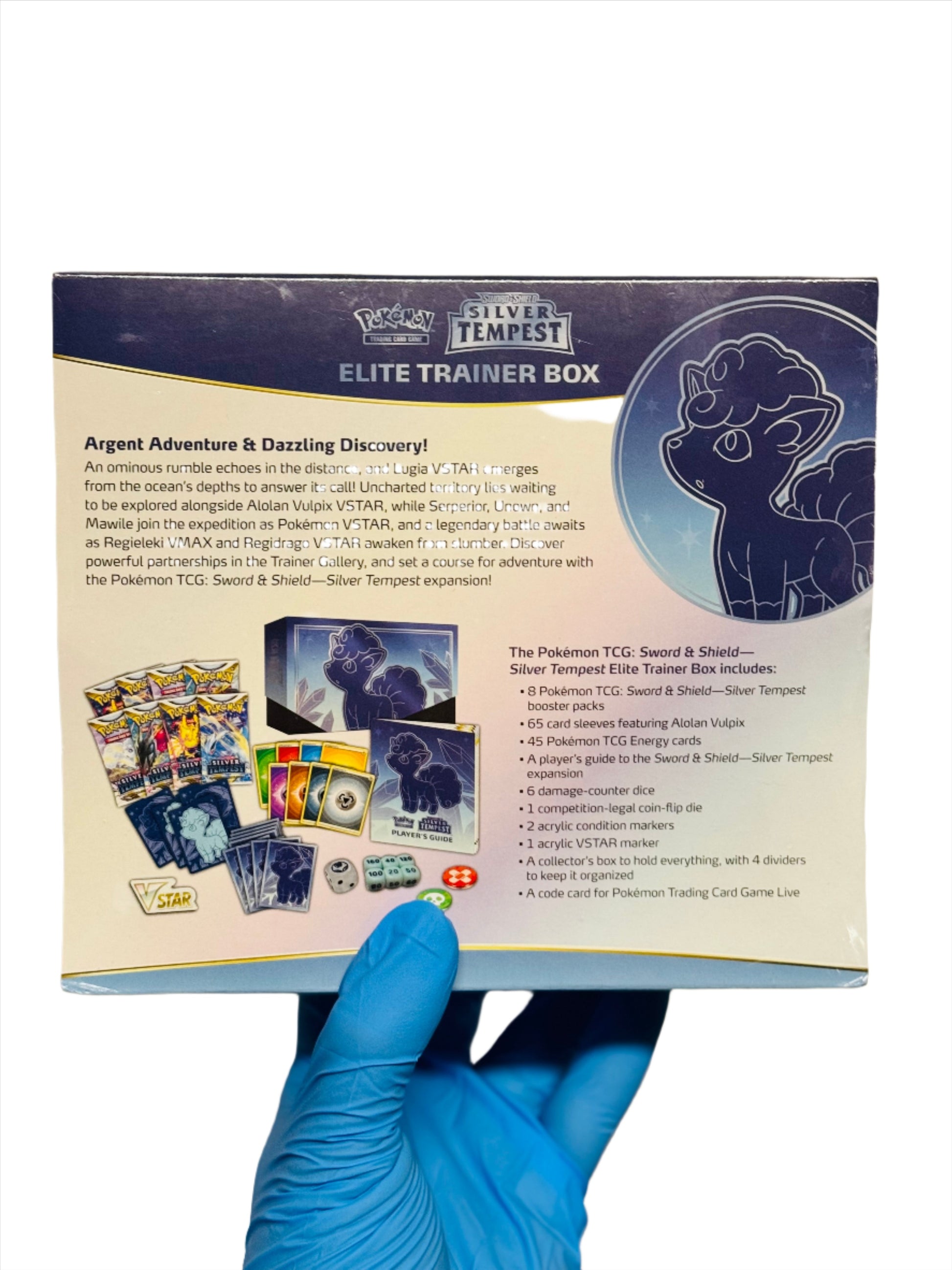 The Pokémon TCG: Sword & Shield—Silver Tempest Elite Trainer Box includes:
